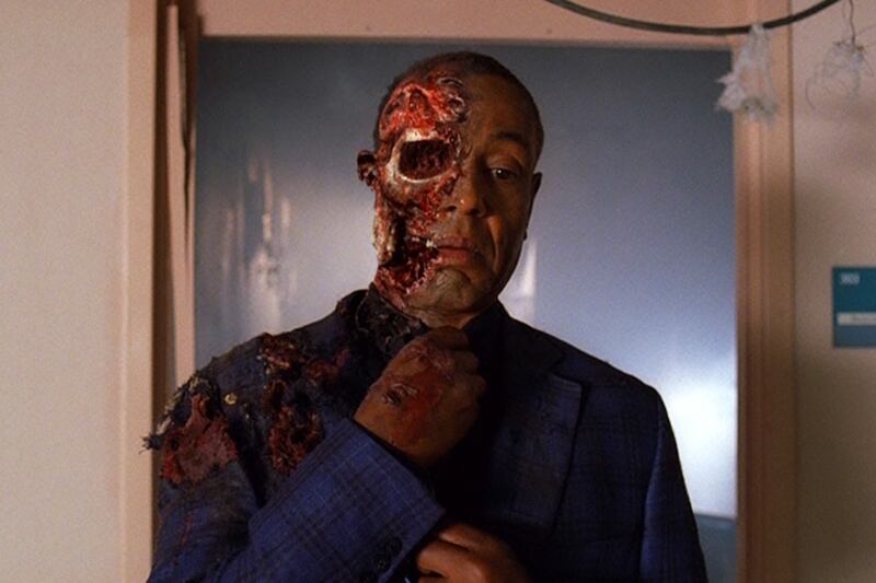 The death scene itself, though, thrilled the actor, who went through five hours of makeup and prosthetics for Gus’s final on-screen moment. “I have died many times in film and television, but this is one of the most fantastic deaths I’ve ever experienced. Truly. I can’t imagine a better way to go out. This guy is a mastermind, and if you’re gonna get a mastermind, you really have to work.”