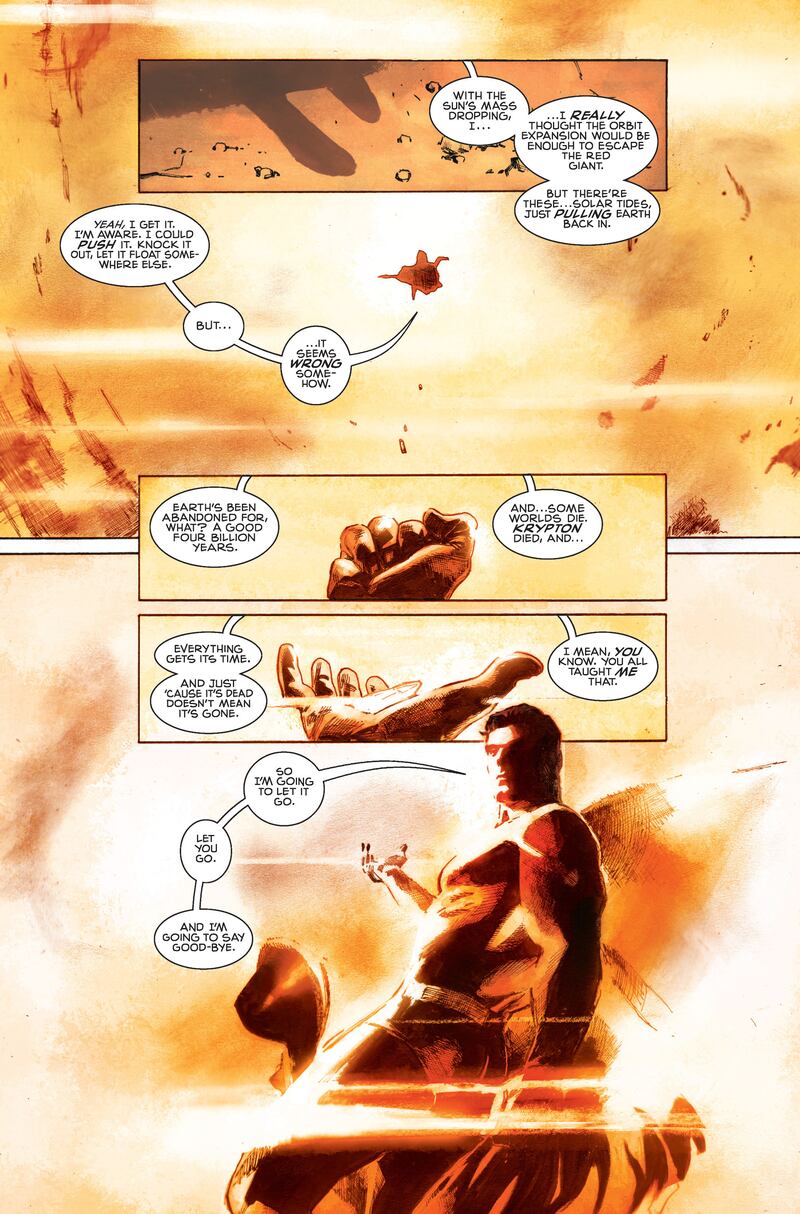 Just yesterday I got my comp batch of #1000 and I got to see it all put together for the first time. It’s such a beautiful anniversary issue and I was flipping through all this work from all these creators that I love and I was so happy that our story is the last story. The last line of #1000 is the surprise that Rogol has for Superman and it’s also a surprise for the audience. After 80 pages of Superman imagery, you think you’ve seen everything there is to know about Superman, then here comes this big whopper that really sets up the next chapter. It’s a hell of a book. We’re really proud of it.