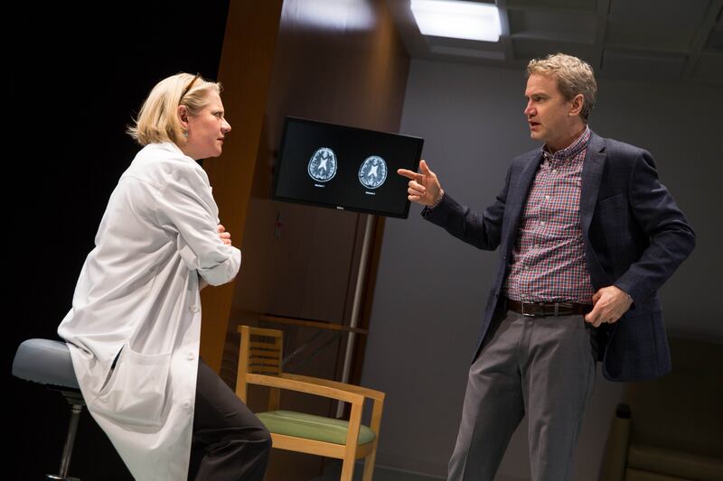 Their relationship is contrasted by the one between two of the medical staff, Dr, Lorna James (Kati Brazda) and Dr. Toby Sealey (Steve Key), who are, or were, more than just colleagues—and who now ward off such tender and flirty reminiscences with talk of what belies their patients’ brain impulses.