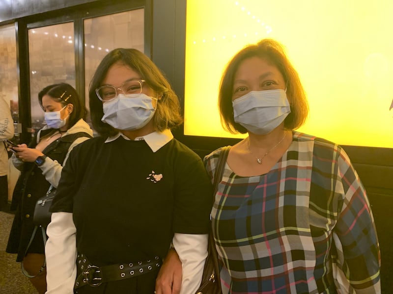 Tim TeemanJessica Esgueria and Felicity Esgueria (who turned 14 on Tuesday), were excitedly waiting to enter the theater. “It’s been a long time that theater has been happening, and it’s good to see people out and enjoying themselves. If we follow the rules, everybody can be safe and it shouldn’t be a problem.” Felicity said she was excited to see this, her first live Broadway show.