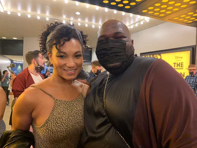 Mary Antonini and Juwan Crawley, from the cast of Aladdin, had come to support their sister Disney show. “We’re so excited to have live theater back. It’s a beautiful thing,” said Crawley. It’s crazy that it’s been so long. Jumping right back into rehearsals, my body feels alive in a way it hasn’t for a long time. Our shutdown was abrupt, very cold, and callous. It had to be, but I’m so happy New York City has gotten back to a place to do art again. I hate that art is our livelihood, and also our ego and survival, but it truly is. Now we get to sing and dance for people, and nothing could be more joyous.”
