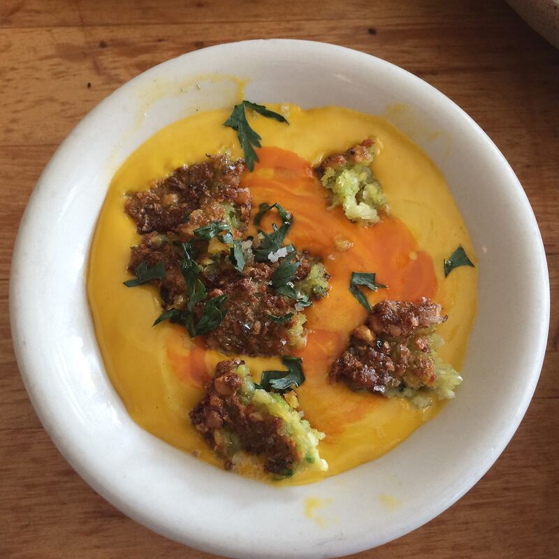 And then there is the bread. She ordered both the flat bread and a griddle bread, which “is like a fried croissant dough,” she says. “It’s so freaking delicious.” Both are the perfect vehicle for healthy spoonfuls of various spreads and salads. It’s truly a tasty start to the weekend, and the shared dishes give our conversation an intimacy that generally only comes with years of friendship.