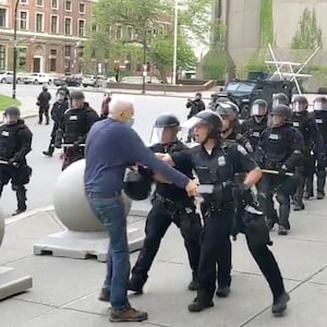 The incident in Buffalo happened against a backdrop of aggressive behavior by police around the nation—from the tear gassing of peaceful protesters to clear space for President Donald Trump in Washington to footage of NYPD officers, including supervisors, taking batons to demonstrators out past curfew.