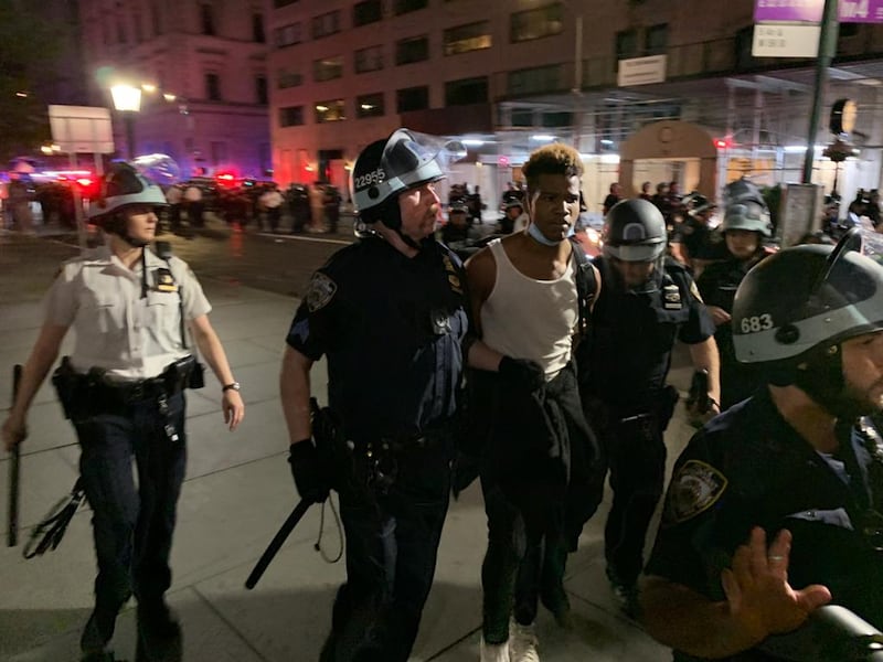 The crackdown came after city leaders had spent much of the day defending the NYPD against accusations of excessive force. After a spate of videos went viral showing police officers apparently using brutal tactics against protesters earlier this week—in one instance driving into a crowd, in another striking protesters with batons even as they walked away—both Mayor Bill de Blasio and NYPD Commissioner Dermot Shea on Thursday praised police officers for their “restraint” during the unrest. Shea pleaded for an end to violence against cops and vowed to “hold police officers accountable” for excessive force, saying some would “probably” face suspension.