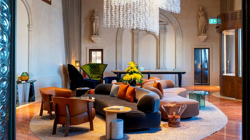 The building’s origins stretch back to 1272 and was overhauled in 1544 by none other than Jacopo Sansovino, architect of the Logetta, the Biblioteca Marciana, and the Palazzo Dolfin Manin. At one point it was a place for pilgrims traveling to the Holy Land to stay and also a hospice for women who had been abandoned. In 2019 a complete overhaul of the property began, overseen by the designer and architect Patricia Urquiola. While the exterior is spruced up historic, inside is sleek and modern. The chapel has been transformed into the lobby with an enormous chandelier made up of more than 14,000 pieces of Murano glass and floors of polished red travertine that continue throughout the hotel. It is a space that is more Scarpa than cinquecento