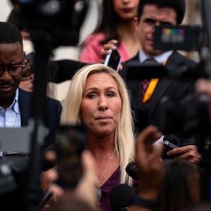 Nine days later, Johnson’s future is murkier than ever. He’s confronting a full-scale GOP revolt over his push to pass a sweeping Ukraine aid package. Three GOP lawmakers, led by Greene, are already backing a motion to vacate the speakership—the same tool used to boot Kevin McCarthy in October—and they could force a vote on his fate at any time.