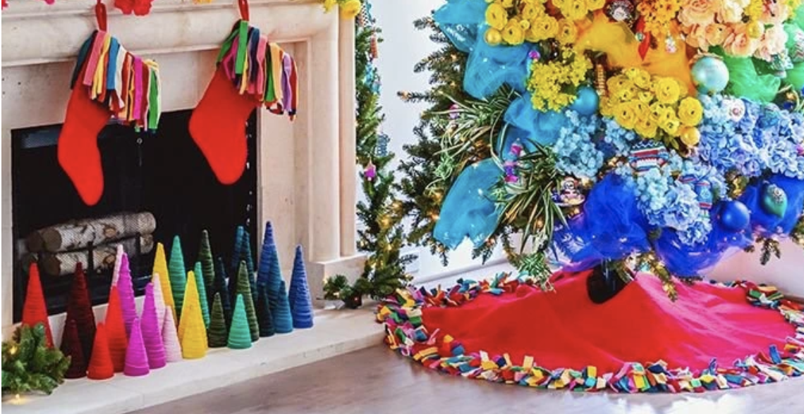 I fell in love with Manor’s rainbow Christmas trees earlier this fall and ordered a set to go in front of my fireplace right next to my real Christmas tree. These one-of-a-kind, luxurious trees have become a conversation piece in my home already, and if I could have it my way they’d stick around all year long so I could marvel at them while I enjoy copious amounts of mulled wine and hot cocoa.