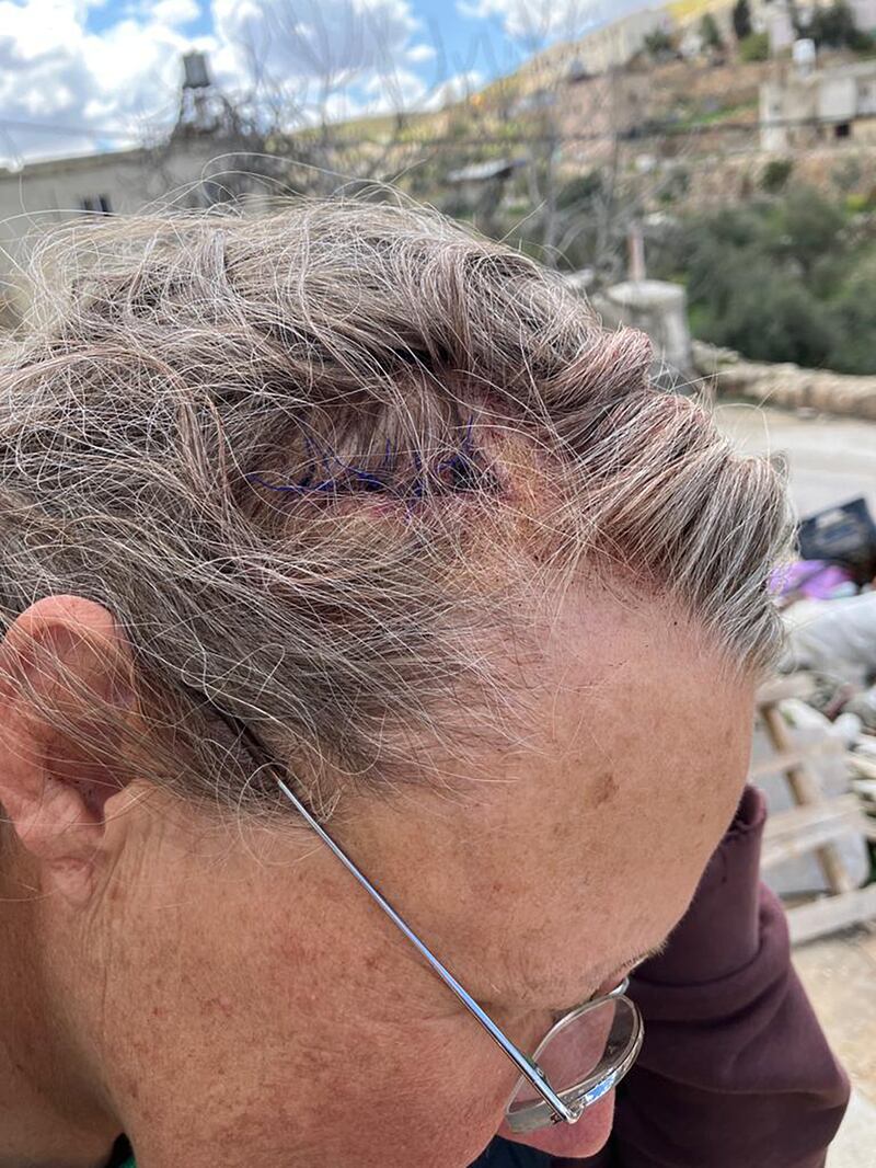 An American mother of two from Wisconsin was caught up in the violence this month. Cassandra Auren, 65, was hospitalized for two days and required six stitches after she suffered a fractured skull and internal bleeding. She told The Daily Beast that she was struck on the head by an Israeli settler with a long wooden stick as she was visiting the village of Tuba in the Massafer Yatta area south of Hebron.
