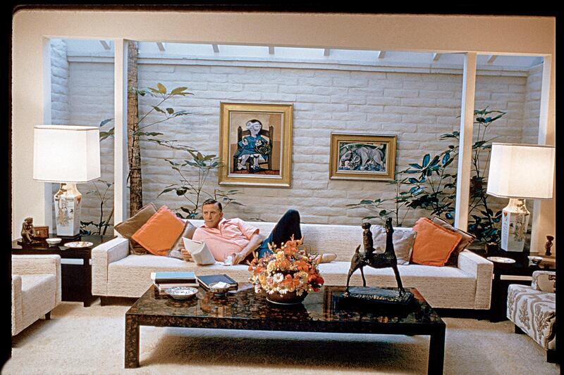 Actor Kirk Douglas studies a script on his couch at his Beverly Hills home in 1984.