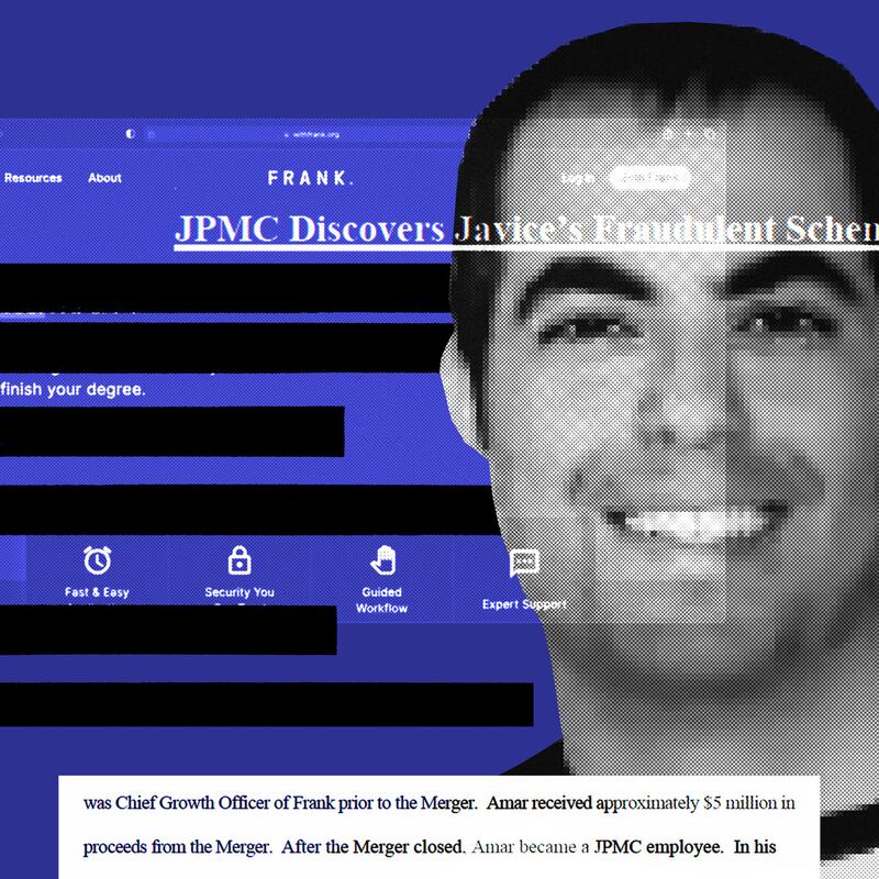 The irregularities spurred an internal investigation into Frank, Javice, and Amar that culminated in the tech tag team’s termination from JPMorgan. “Javice and Amar’s fraud materially damaged JPMC in an amount to be proven at trial, but not less than $175 million,” the lawsuit states.