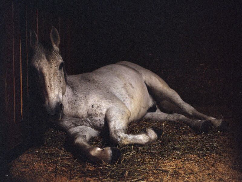 This photo of a sleeping funerary horse from Arlington National Cemetery is by Charlotte Dumas, and is now in her solo show at Julie Saul Gallery in New York. Her shots of these horses are lovely, but come too close to picture-postcard animal aesthetics for my liking. What I found really gripping were the videos of the same sleeping beasts. (Click on the image to view a clip that I shot.) The videos capture the strange half-waking state the horses seem to be in, even at rest, and make clear just how different their behaviors are than our own. Their extreme vulnerability, and utter dependence on humans, also seems palpable.