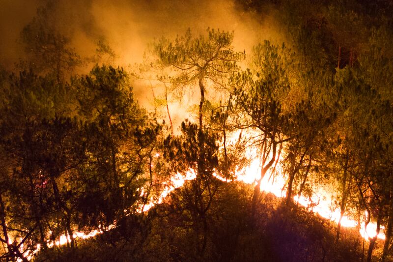 Smoke and flames rising from a mountain during a wildfire in near Chongqing, China last August.