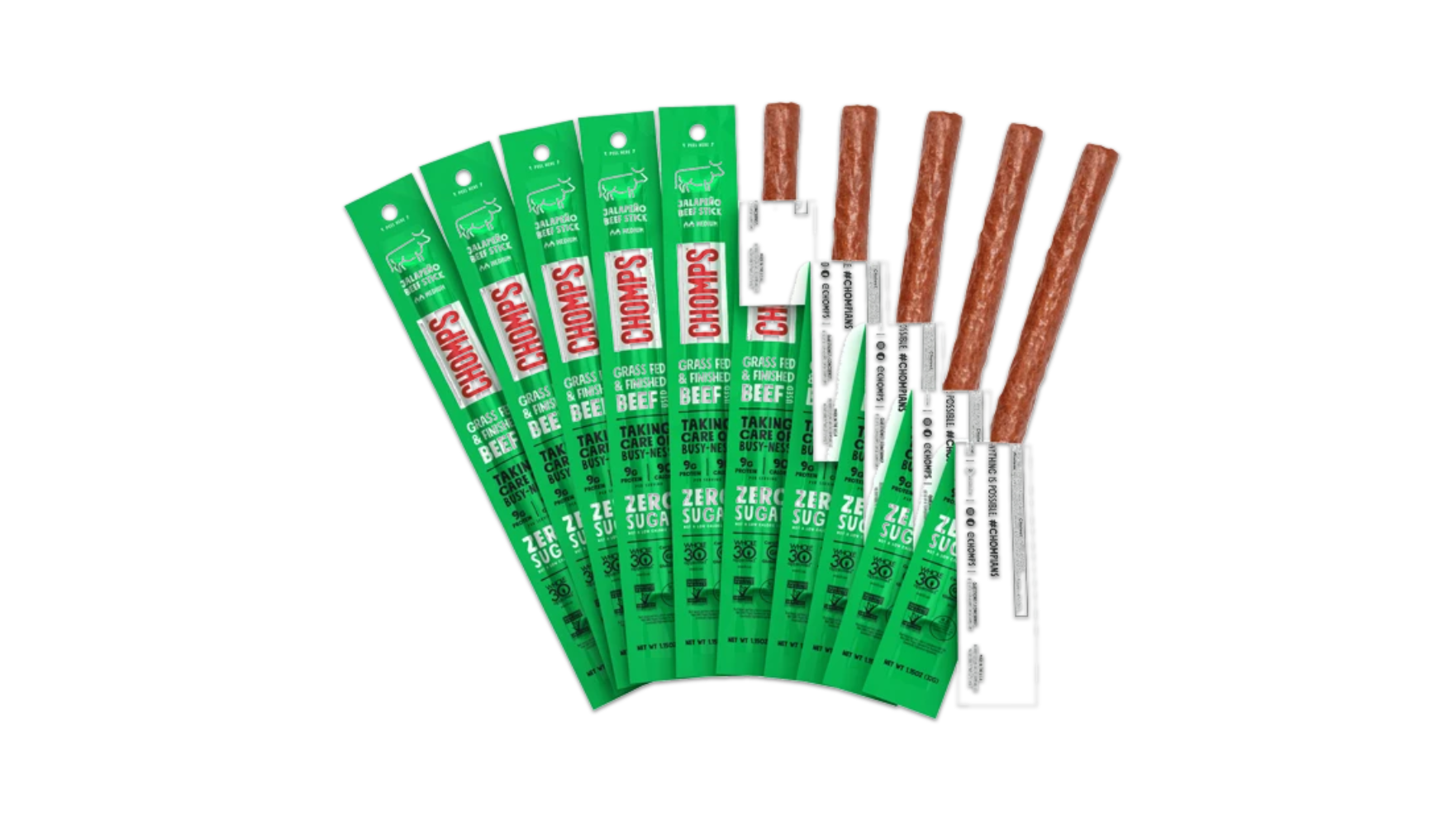 Can’t decide between all the mouthwatering flavors? Get them all! This variety pack comes with six of Chomps’ most popular flavors—Original Beef, Jalapeño Beef, Italian Style Beef, Pepperoni Turkey, Original Turkey, and Salt & Pepper Venison.