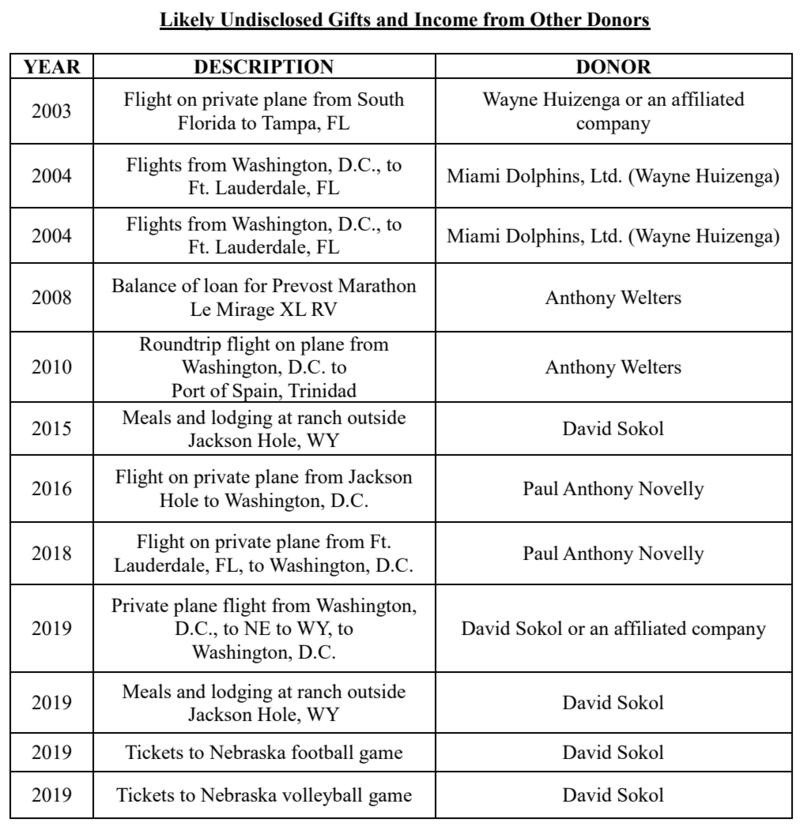 According to the senators, Thomas’ conduct could violate the Ethics in Government Act, which requires officials like Supreme Court justices to file annual reports disclosing gifts and income accepted from outside sources.