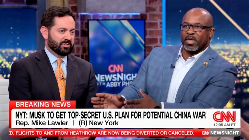 Lawler—who won re-election in New York’s 17th District in November—took it in the neck on the CNN show from former Democratic Rep. Jamaal Bowman, for his refusal to condemn the Trump ally’s reported briefing on a potential U.S.-China war.