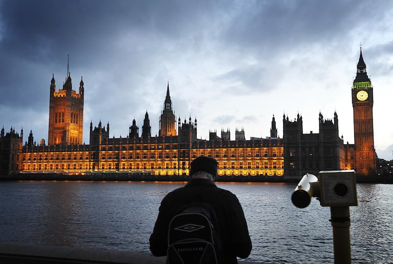 The Houses of Parliament in London at night.
