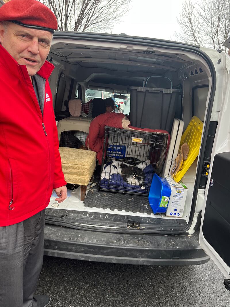 Wednesday’s event was preceded by a press release distributed to various New York media outlets. Sliwa arrived across from Adams’ house in the back of a small van that had “Guardian Angels Animal Protection” stenciled on the doors. His wife joined him in carrying Thor and Tiny across the street in a cage.