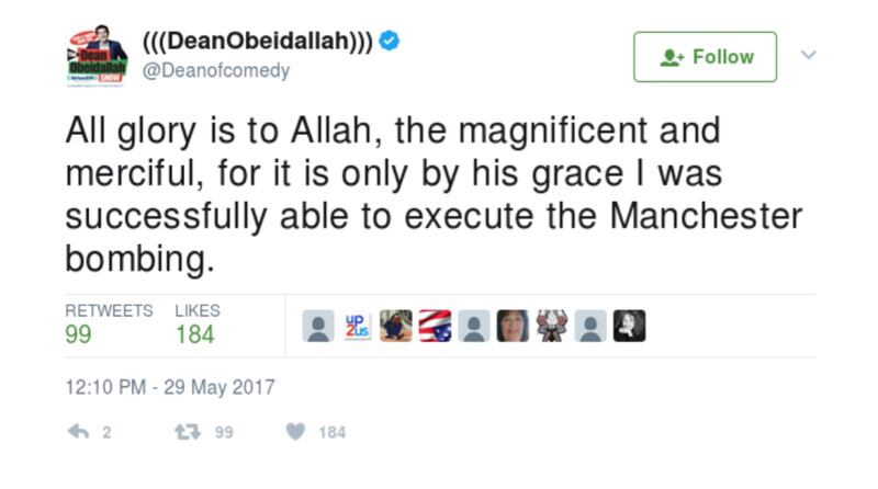 Daily Stormer allegedly doctored tweets that appeared to be from Obeidallah’s account where he admits responsibility for the Manchester attack and describe an eternal paradise awaiting the bomber. The complaint also alleges the Daily Stormer article said Obeidallah was on the run from law enforcement and had fled to Syria.