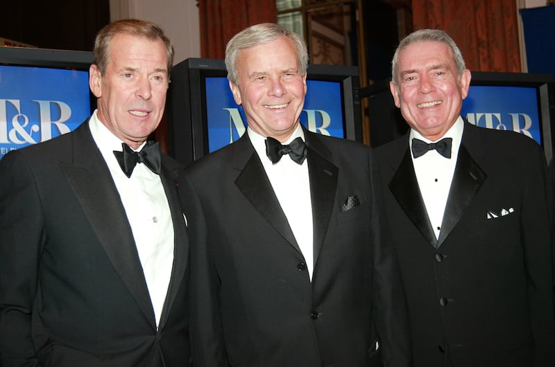 ABC News anchor Peter Jennings, NBC News anchor Tom Brokaw and CBS News anchor Dan Rather attend The Museum of Television and Radio's annual gala, this year honoring NBC News anchor Tom Brokaw, on February 19, 2004, at the Waldorf-Astoria Hotel in New York City.