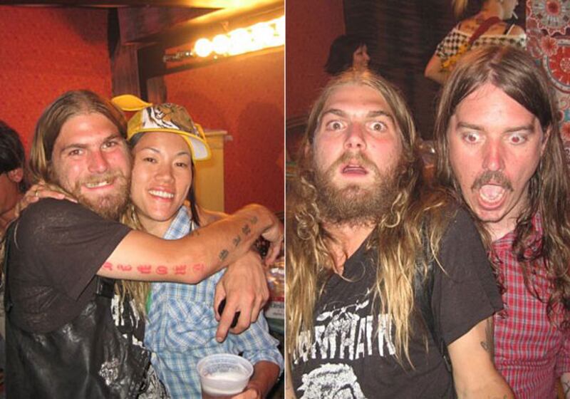 Snow with Hsiung and her boyfriend Scott Martin. Of Snow, Martin says, “Dash loved listening to records all night... he would frantically put on a record then gracefully slide up next to you barefoot, and I'm talking about an inch away, wrap his arm around your shoulders or waist. And he'd warn "OK, here comes this part, these lyrics, they're so damaged, watch..." Then he would start reciting the words to the song in a whisper almost into your mouth. The sun would be coming up and he'd be lovingly staring into your eyes and singing.. and after he was done reciting his part, he’d flip his cigarette around in his hand and gently put it in your mouth, and he'd purse his lips, like he was coaching you…and you'd take a drag and go "Yeah man, I fucking love this song too.” He is probably the sweetest and kindest person I've ever known... I love you snowman."