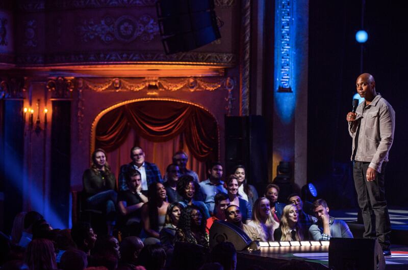 In The Bird Revelation, Dave sits center stage for a smaller crowd in what’s billed as a more “intimate and spontaneous” show in Los Angeles. Here, he tackles the recent wave of sexual-assault allegations coming out of Hollywood. Riffing on Harvey Weinstein, Kevin Spacey, and Charlie Rose, Chappelle reserves his more pointed commentary for fellow comedian Louis C.K., who has been accused of sexual misconduct by several women. In the wake of the accusations, C.K.’s movie I Love You, Daddy has been shelved, FX cut ties with C.K., TBS suspended production on a C.K.-produced animated series, and Netflix announced it wouldn’t be producing the comedian’s second planned comedy special.
