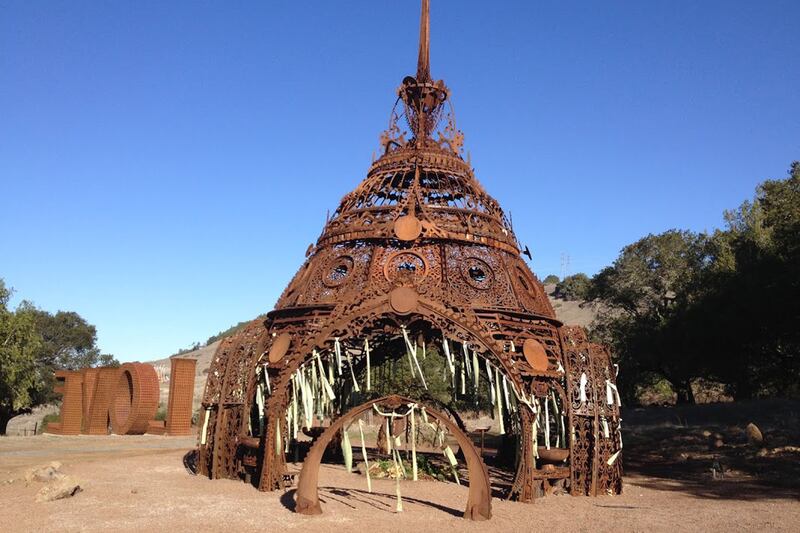 The temple idea caught fire, and while that ephemeral tradition continues as an end-of-the-festival ritual each year, the new Temple of Remembrance, on a hillside in Sonoma County, is Best’s first constructed in steel and is permanent. It sits somewhere between Truth and Love (that’s not a metaphor, those are the names of two other large Burning Man sculptures relocated to the same grassy, oak-fringed field) in a place where—despite expansive tree and vineyard vistas—visitors will find themselves looking within.