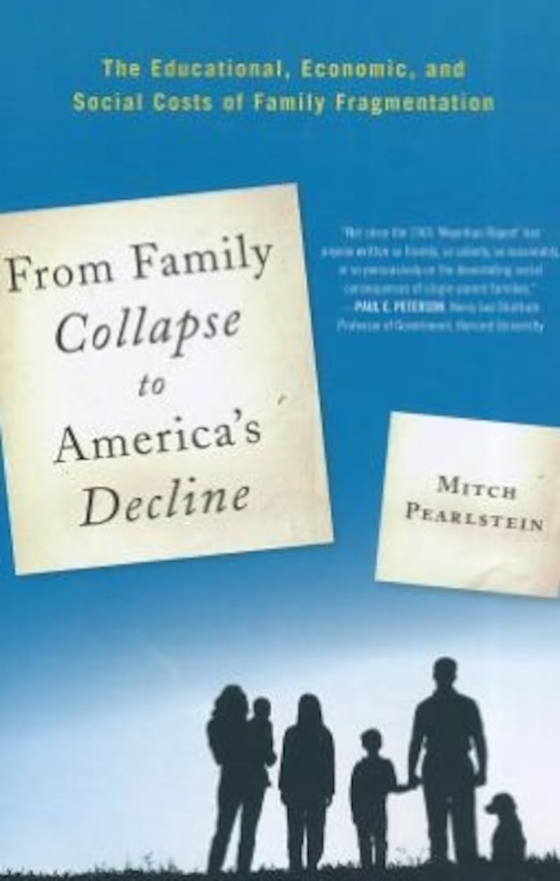 Dr. Mitch Pearlstein’s From Family Collapse to America’s Decline makes an unapologetic attempt to soberly address one of America’s most tragic, yet largely ignored, shortcomings over the last half of the last century: the decline and collapse of the American family. It is the erosion of marriage and family, argues Pearlstein, which can be found at the root of coinciding declines in educational performance, and subsequently economic performance of the generations of American children raised in broken or never-formed families.