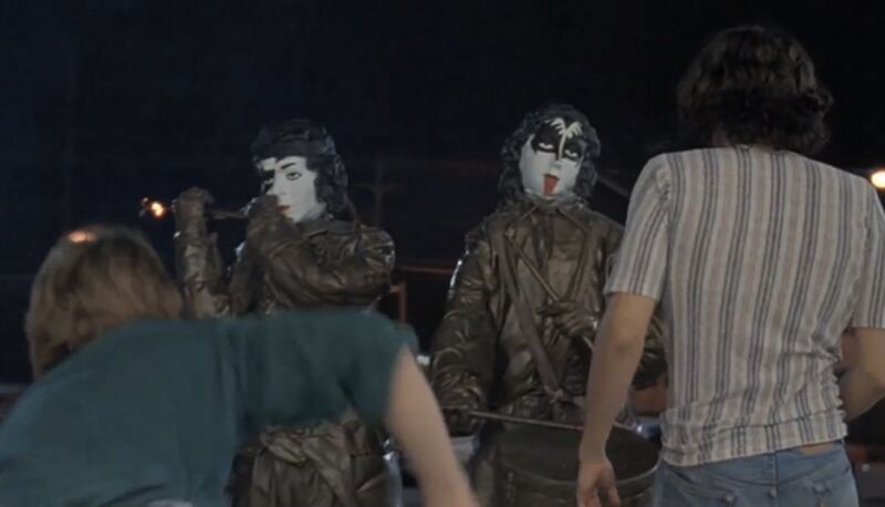 The soldier memorial statues that Michelle (Milla Jovovich) paints over with KISS makeup were originally supposed to play a bigger role in the film. The statues were to be stolen, before eventually being confiscated by the cops. Some of these scenes are included on Dazed and Confused’s DVD bonus features. KISS frontman Gene Simmons reportedly purchased the statues to add to his collection, and later sold them at Butterfield’s KISS auction in 2000 for $6,000.