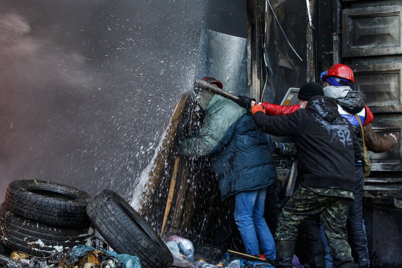 Meanwhile, the toll of the injured kept climbing. The police and opposition counted over 200 wounded on both sides. Clashes between a few hundred protesters—armed with self-made bombs, sticks and cobblestones—and thousands of Berkut special battalions continued for four days and four nights this week. Shocking beatings took place on Monday: Berkut special forces detained two construction workers, undressed them and shot rubber bullets all over the two men’s naked bodies. After that, officials let the injured men walk naked across “the front line,” where protesters helped the victims with first aid.
