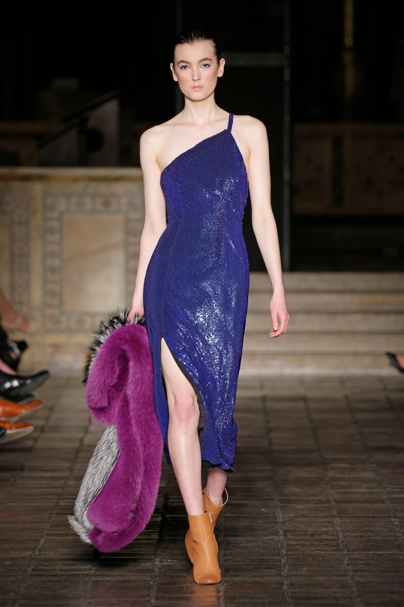A few moments later, the 70-outfit strong collection rolled out just as he said it would: There was still fur, luxuriantly worn as ever, but there were also slinky evening dresses, ornately beaded gowns, and short leather skirts. The redoubtable Basso sails on. TIM TEEMAN
