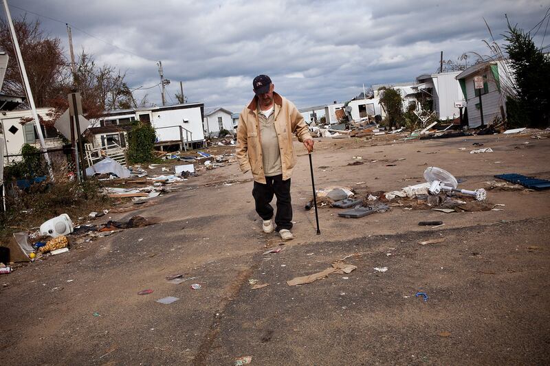A man surveys the damage at the Paradise Park trailer park in Highlands, N.J. The storm continues to affect business and daily life throughout much of the state.