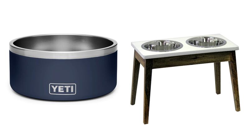 YETI Boomer 8 Stainless Steel Non-Slip Dog Bowl, $49.99 on Amazon, Elevated Dog Feeder With Wooden Stand, $29.99 at Target