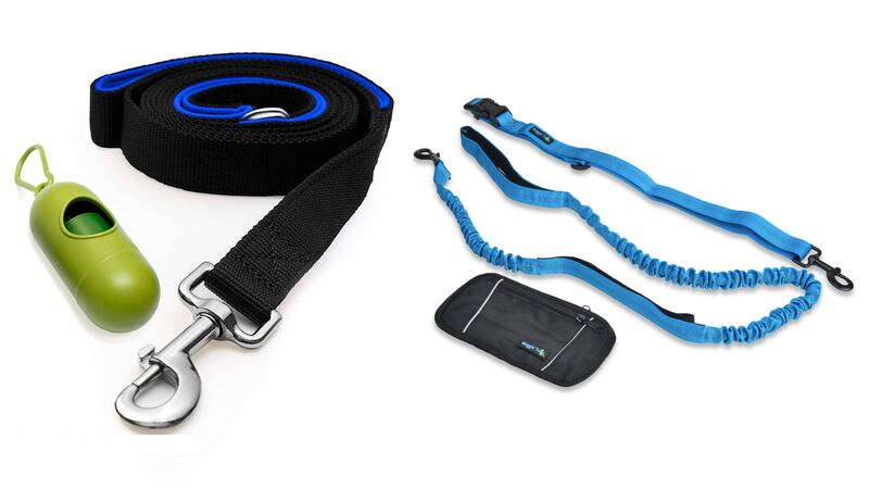 Dog Leash with Bonus Free Waste Bag Dispenser, $8.97 on Amazon, Waggin' Tails Smart 3-in-1 Hands Free Dog Leash, $19.88 at Chewy