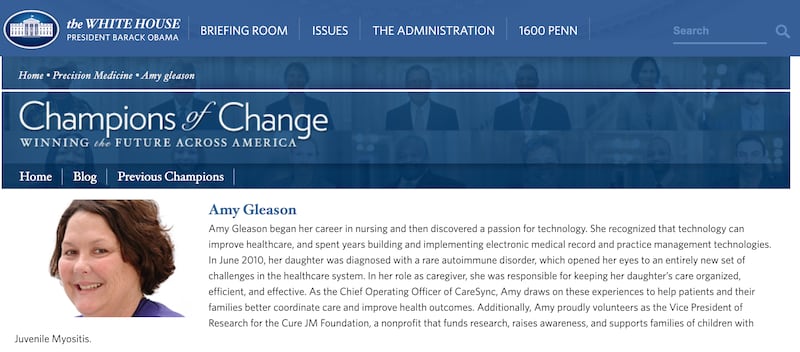 “Experienced executive with a demonstrated history of improving healthcare technology, including electronic medical records, practice management, patient solutions, interoperability, and federal civic tech,” she writes of herself. “My work is inspired by my firsthand experience navigating the healthcare system as a patient and caregiver, and I am passionate about creating a better healthcare experience and improving health outcomes.”
