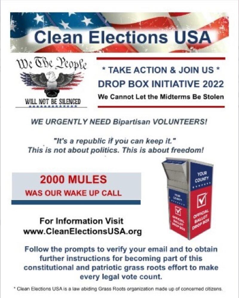 Clean Elections USA began watching drop boxes during the primaries this past summer, which Jennings, who goes by “TrumperMel” online, trumpeted on Truth Social, the floundering social network Trump backed after being banned from Twitter. This served as a sort of “dry run” for the midterms, Jennings said.