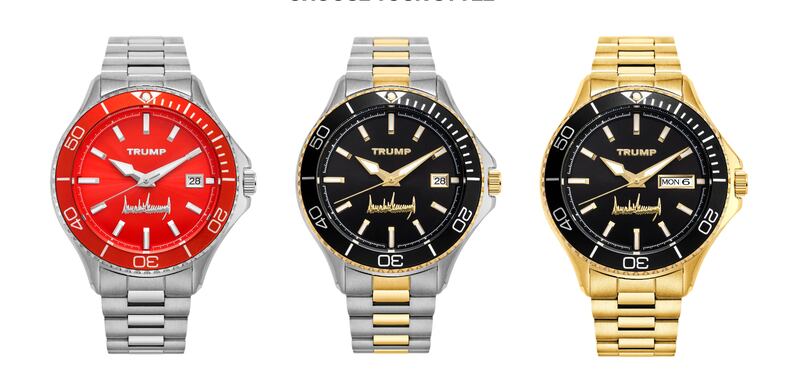 Donald Trump revealed his latest tchotchke for sale Thursday with the launch of his “truly special” Trump Watches timepieces that retail for up to $100,000.