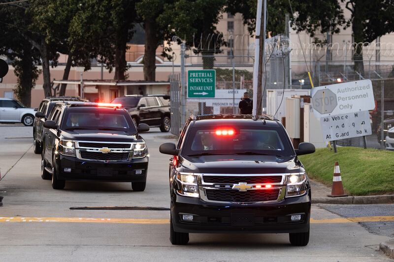 Earlier in the afternoon, Trump left his home in Bedminster, New Jersey, and took his private jet south to Atlanta. Flanked in a motorcade from the airport, the former president arrived at the county jail complex, which is notorious for its abysmal conditions—so much so that the Department of Justice opened an investigation into the facility last month.