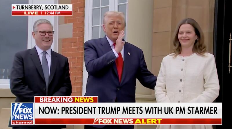 Minutes after Keir and Victoria Starmer arrived at Trump’s Turnberry golf resort in Scotland, where the two men are scheduled to discuss a range of issues including trade and the war in Gaza, a reporter asked Trump a question about tariffs.