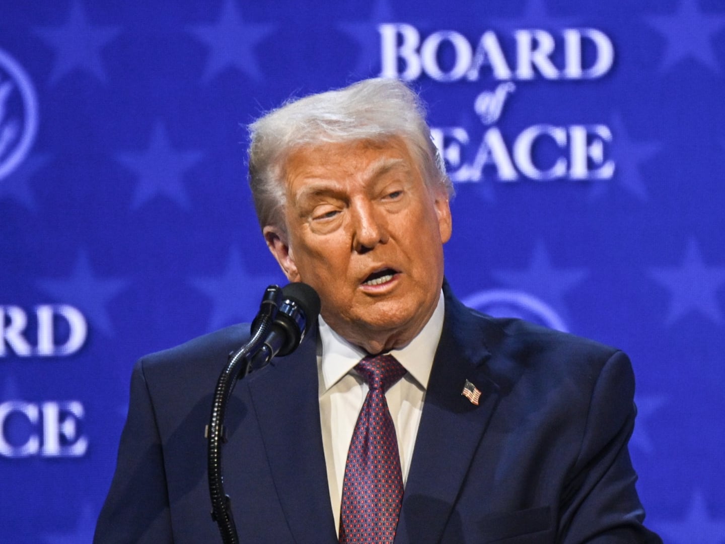 President Donald Trump speaks after holding a signing ceremony for the “Board of Peace” at the World Economic Forum (WEF) on January 22, 2026 in Davos, Switzerland.
