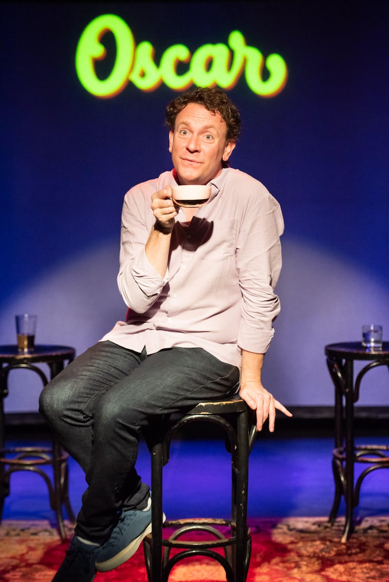 Russ RowlandDroege’s vivid compendium of characters begins with a guest, who is a random, rude lush—a direct echo of his character Gerry in Bright Colors and Bold Patterns. This guest, an actor, is trying to make sense of a career gone south, while leering at any man in the vicinity. Droege’s skill is to both bring a character into fizzing life, and also make clear his frailties as we are being invited to laugh at him.