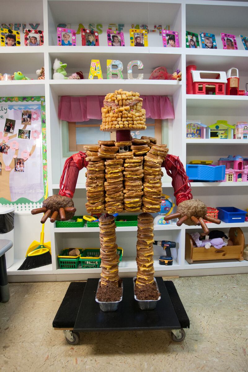 It's made of tater tots, obviously, grilled cheese sandwiches, and burgers. This is what an epic meal looks like when it's created from the brains of children.