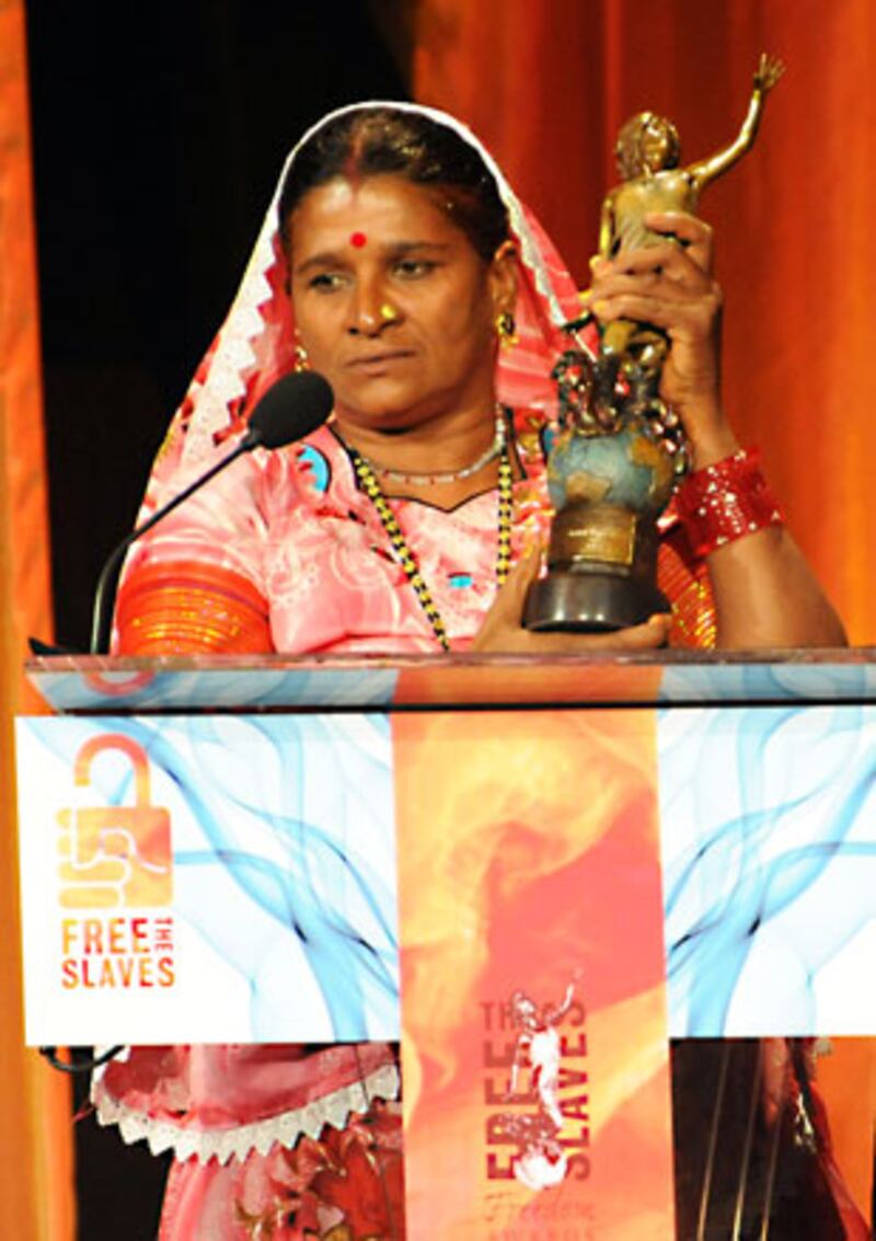 Though never a sex slave, Veero, another recipient of the Frederick Douglass Award, escaped from a different kind of slavery—indentured servitude. A local farmer claimed Veero’s family owed him a debt, and kept them and other slaves under guard of hired men with guns and axes. The men wore leg irons. When Veero began worrying that the farmer wanted to sexually abuse her children, she took a terrifying risk to break free from slavery. She slipped away, alone and on foot, until she reached a local police station and staged a sit-in until they agreed to take action and free her family. Veero received the Frederick Douglass award for her work showing 700 other slaves how to break free from slavery.