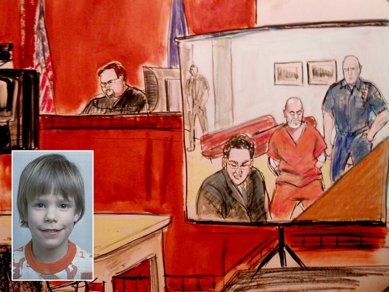 In the early evening, the proceedings commenced. Hernandez appeared in the courtroom on a five-foot projection screen. He sat in an orange prison jumpsuit with his hands cuffed behind him, blank faced. The sight of him was made all the more disheartening by the thought of everything Etan Patz might have become.