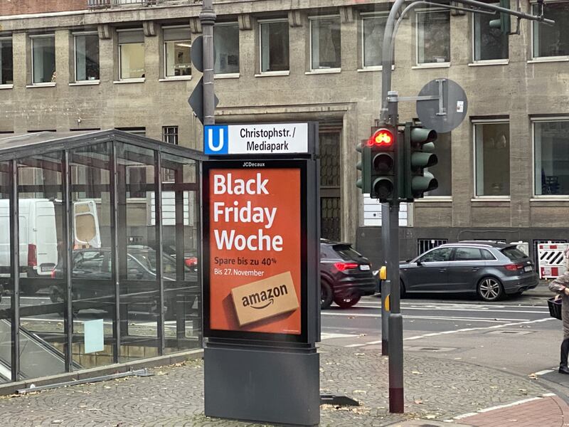 An ad in Cologne, Germany boasts of Black Friday Week sales.