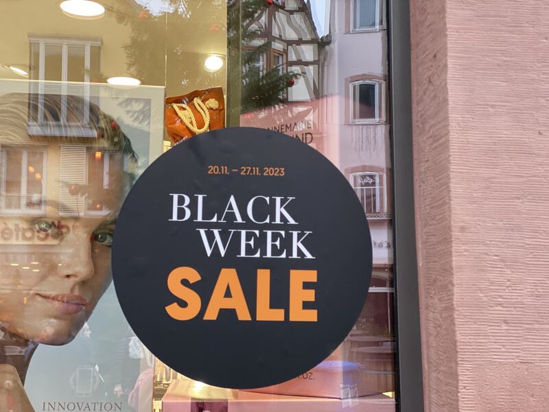 Black Week sales advertised at a store in Koblenz, Germany.