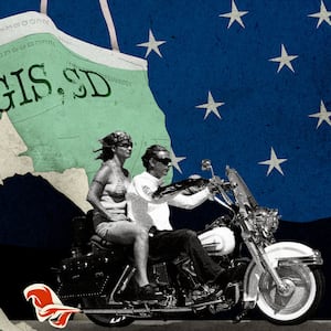 The big, throbbing Harley “hog” is the rally’s official motorcycle.