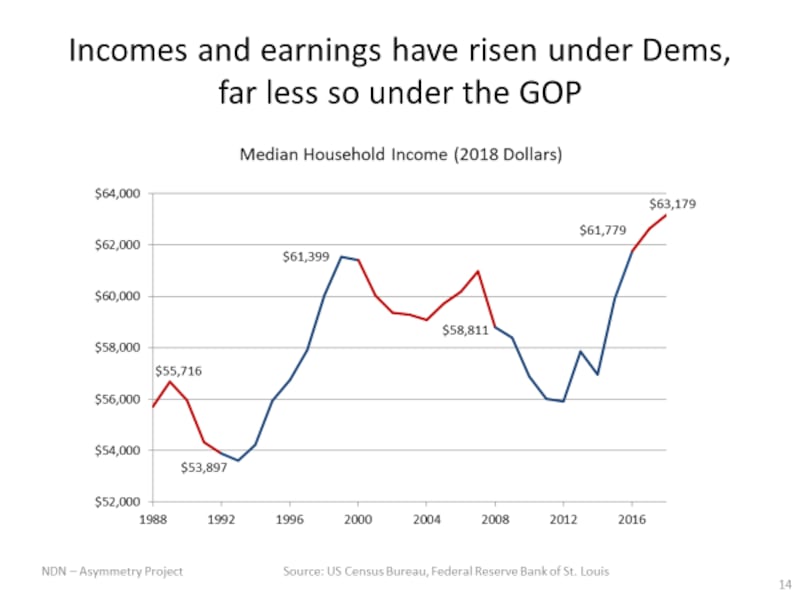 The presentation compares how the economy has performed by various measures under Democratic and Republican administrations, going back to 1989. That means that it fairly compares 16 years of Democratic presidencies (Clinton and Obama) to 16 (almost) years of Republican presidencies (Bush, Bush, and Trump). It uses official government numbers, from the Bureau of Labor Statistics and so forth. There’s no cooking of any numbers. It’s just the facts.