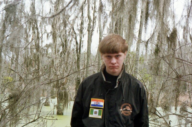 A sparse Facebook page shows an image of Roof in a jacket with the flags of apartheid-era South Africa and Rhodesia (now Zimbabwe).