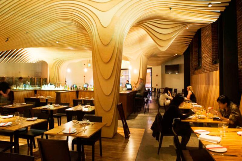 The Buzz: The first thing you notice when you walk into Ginger Park is its spectacular, undulating-wood ceiling. The restaurant used to be called Banq, but re-opened at the end of September after a few renovations and with a new chef, Bobby Flay protégé Patricia Yeo, who left Manhattan after some big hits (AZ) and flops (Monkey Bar). Ginger Park seems the former: intriguing, reasonably priced small plates meant for sharing and inspired by Yeo's recent two-year stint in Asia where, as she put it, she did "stages" with street vendors in Thailand, Malaysia, and China. By all accounts, the