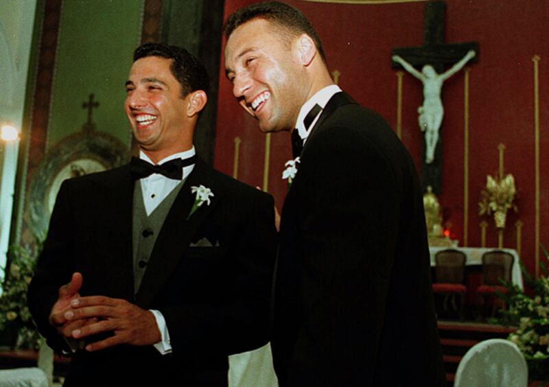 The men in pinstripes have been best friends since 1995, when they entered the big leagues together. In late 1999 and early 2000, the Yankee shortstop also served as best man at Posada's wedding double-header. The first ceremony was a four-person affair at home—the couple shared pizza but didn't have rings. A few months later, the Posadas had a proper celebration in Puerto Rico, and Jeter stood by his catcher once again. Perhaps Posada can return the favor if Jeter ever proposes to Minka Kelly, his girlfriend of three years.
